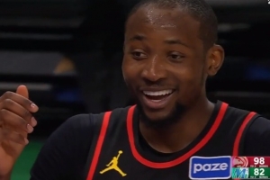 GIF-库明加后场罚球线单臂扔三分直接扔进篮筐
