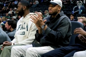 在字母弟罚球得分时,字母哥在场边大喊道:“嘿,伙计,我现在就能够退役啦。我已经做到了一切,伙计。”