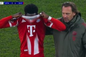 体育资讯03月11日讯 拜仁vs亚特兰大第70分钟,阿方索无对抗情况下受伤!直接下场了!镜头拍到阿方索很难过要哭了的表情!